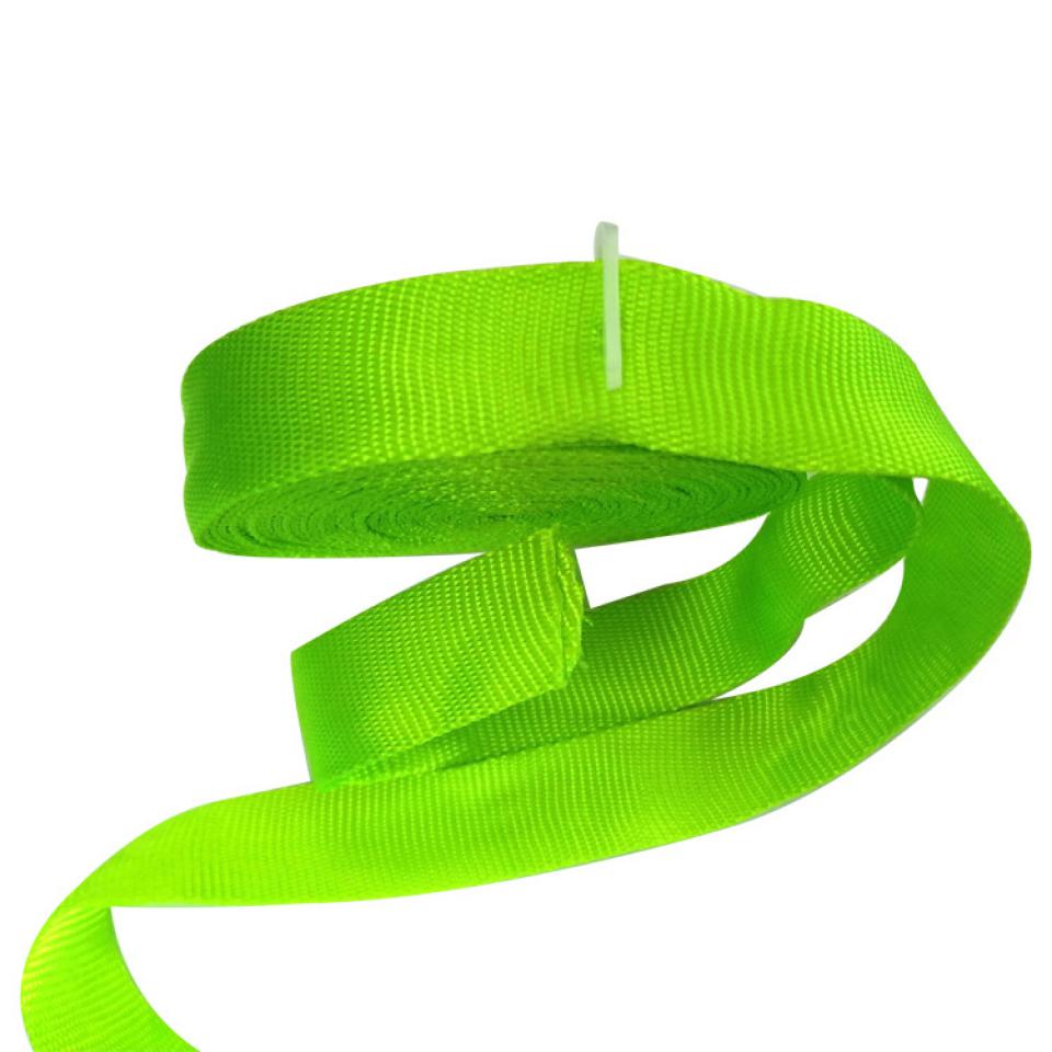 Made of nylon fibers. It has high strength, abrasion resistance, chemical corrosion resistance, and good elasticity and durability. It is often used to make webbings that require high strength and durability, such as mountaineering equipment, backpack straps, and safety belts.