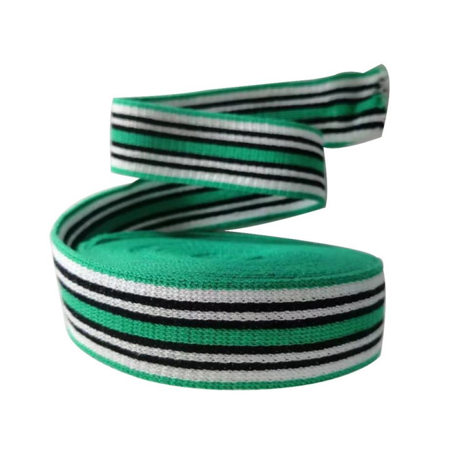 Knitted elastic bands are made of materials such as rubber filaments or elastic synthetic fibers. They have good elasticity, contain a relatively high amount of natural rubber elastic fibers, are beautiful and durable, and are mainly used in garment accessories.