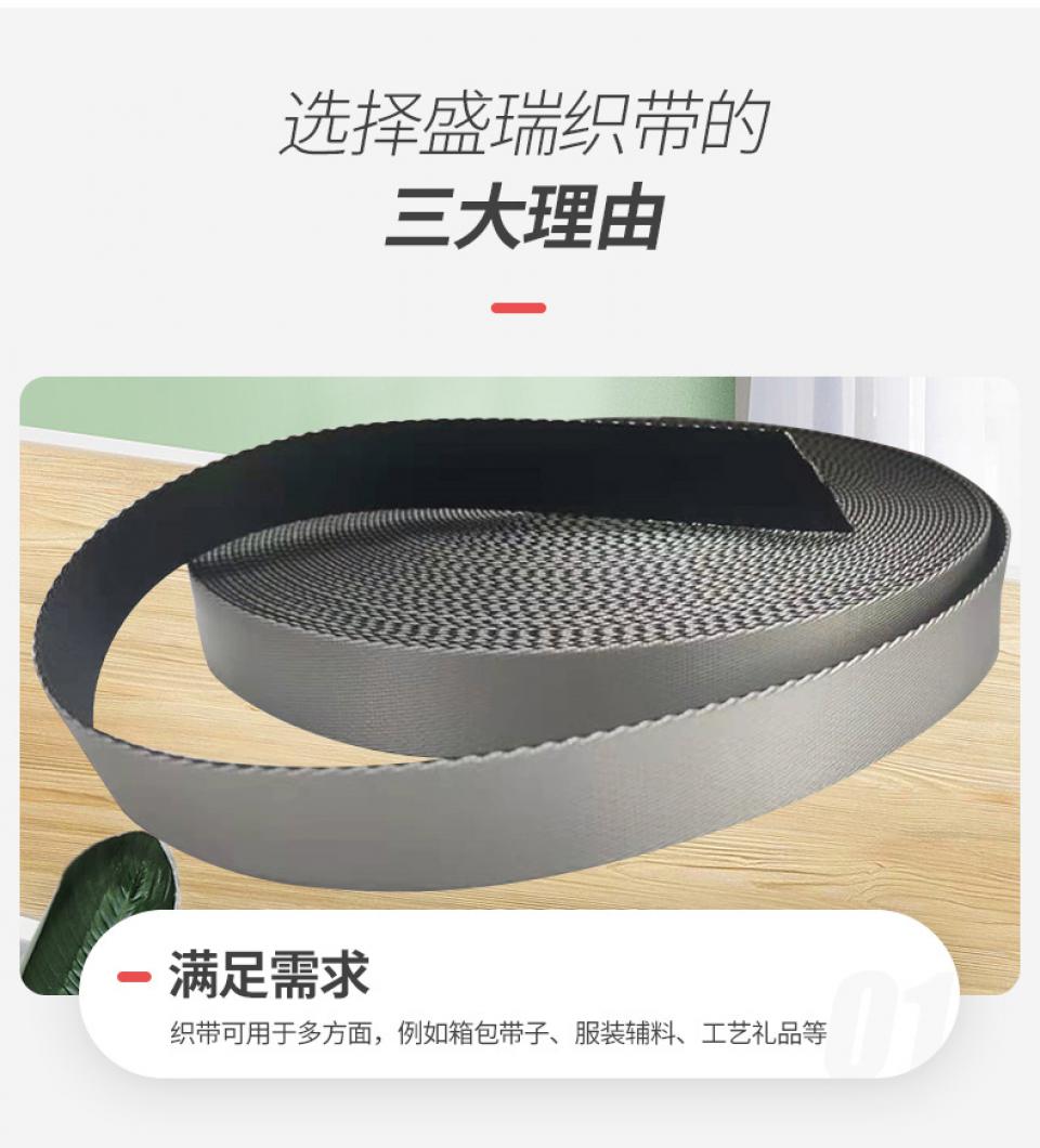 Made of nylon fibers. It has high strength, abrasion resistance, chemical corrosion resistance, and good elasticity and durability. It is often used to make webbings that require high strength and durability, such as mountaineering equipment, backpack straps, and safety belts.