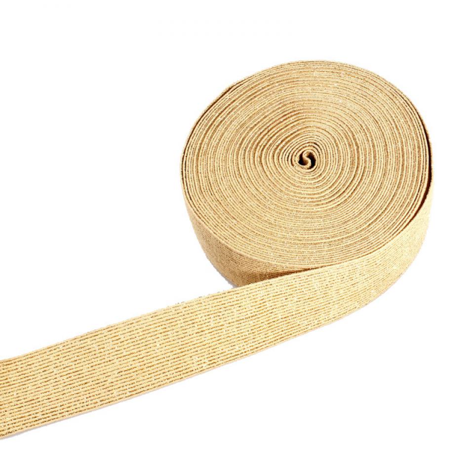 Knitted elastic bands are made of materials such as rubber filaments or elastic synthetic fibers. They have good elasticity, contain a relatively high amount of natural rubber elastic fibers, are beautiful and durable, and are mainly used in garment accessories.