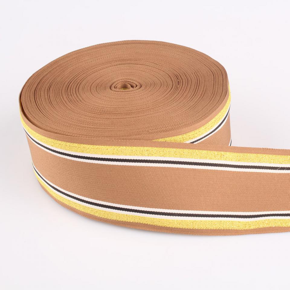 Intermediate color bordered striped elastic bands are made of natural cotton fibers. They can be used for clothing belts, edge decorations, home decorations, as well as straps for bedding and curtains.